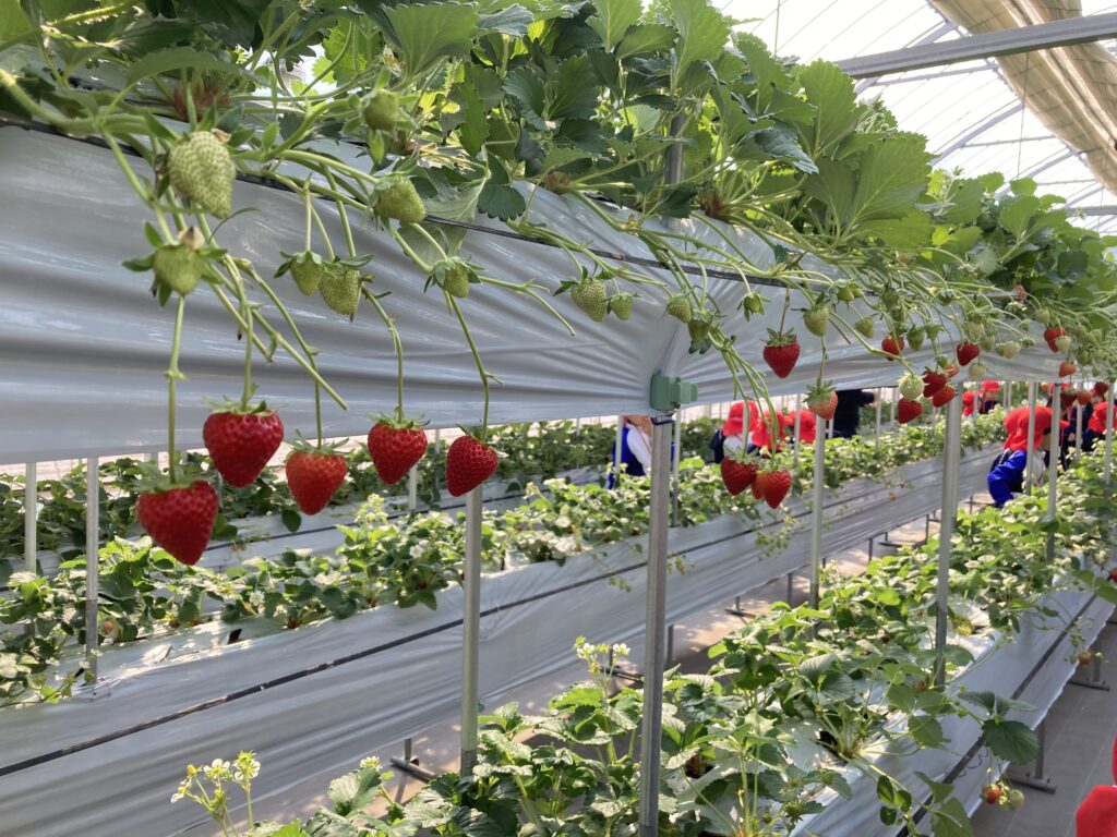 いちご園に到着すると、いちご園の方がいちごの摘み方や約束事をお話してくださりました!