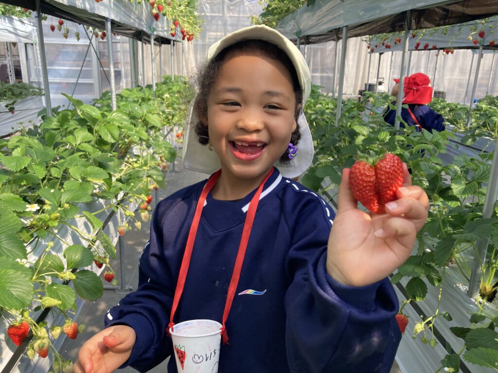念願のいちご狩りが始まると、「甘くておいしー!!」「真っ赤なの見つけた!」「大きいの採れた~!!」と、もぎたてのいちごをおいしそうに頬張り、素敵な笑顔がたくさん見られました💕