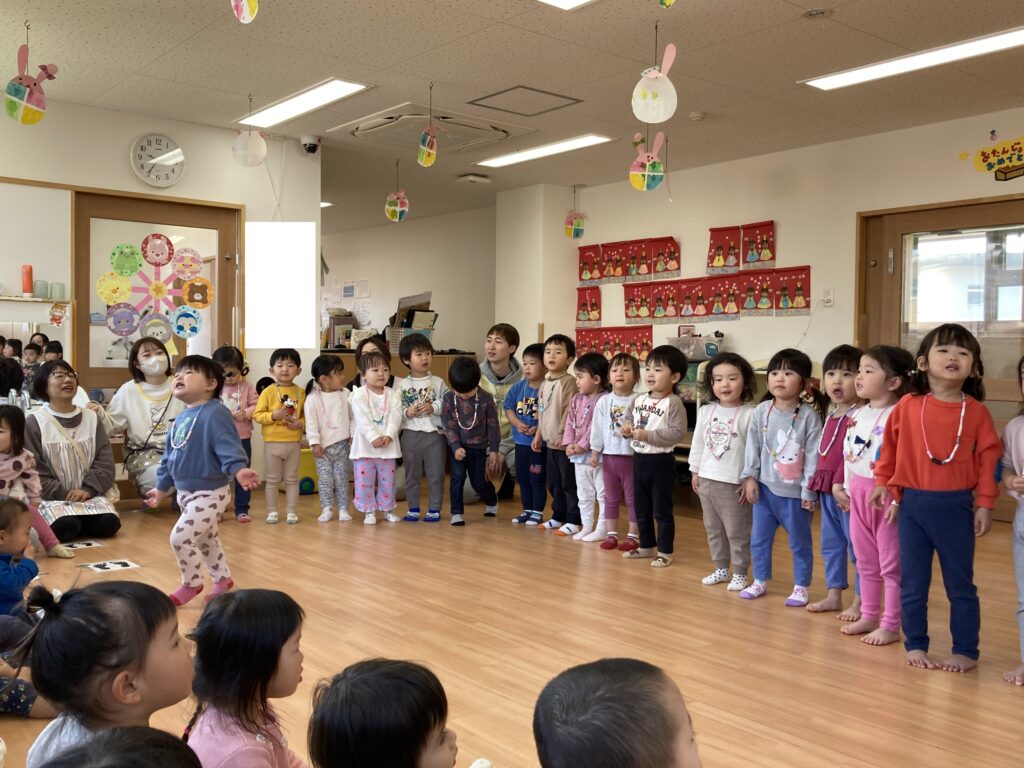 それにお返しするように、ぞう組さんからは「にじ」のお歌のプレゼントがあり、あたたかい雰囲気に包まれていました♪
