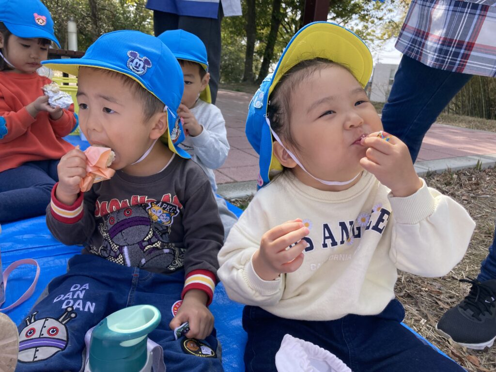 少し長い道のりも元気いっぱいに歩き、お外で食べるおにぎり弁当は格別🍙✨