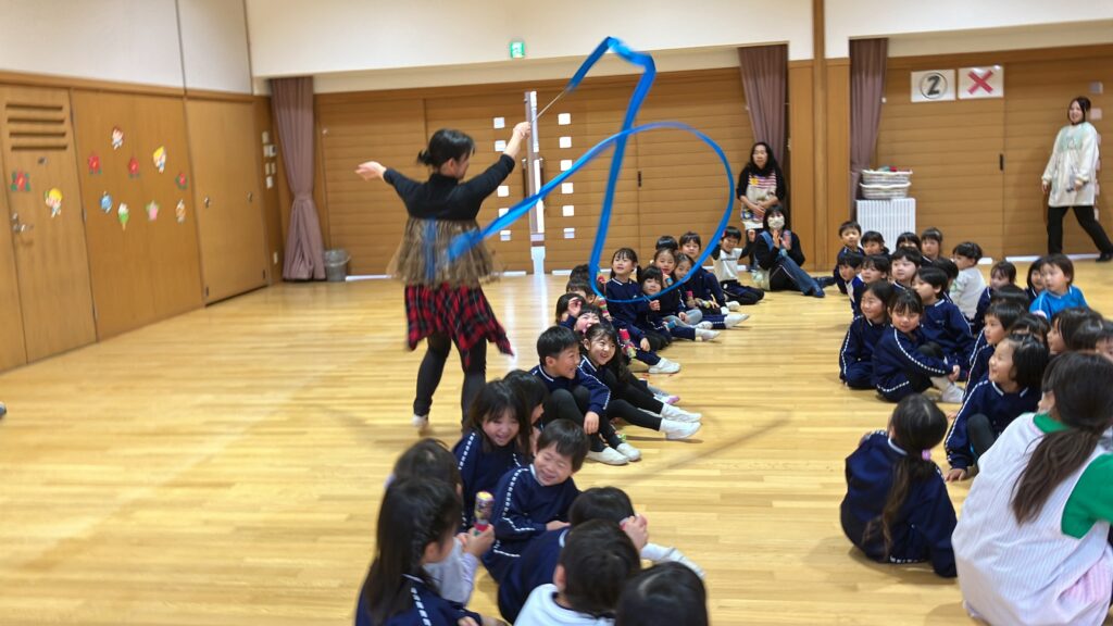 また、先生のリボンダンスタイムでは、「きれい!」「かわいい!」「リボンが近くまで来てびっくりした!」ととても楽しんでいた様子でした。