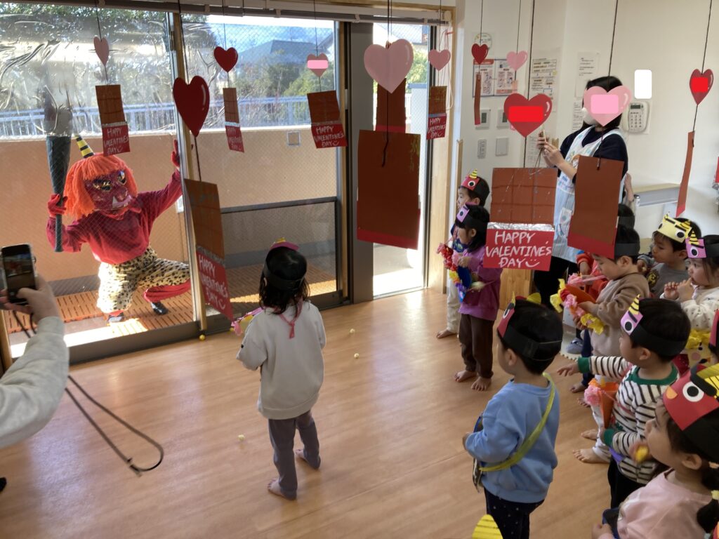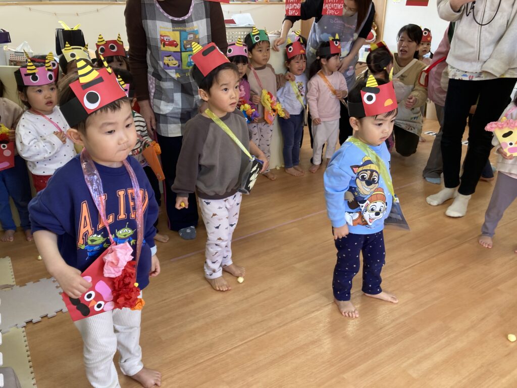 そしてついに赤鬼が登場&鬼の登場に泣いている子どもの姿も見られましたが「鬼は外~!福は内~!」と言いながら一生懸命に豆まきをしていた子どもたちです!